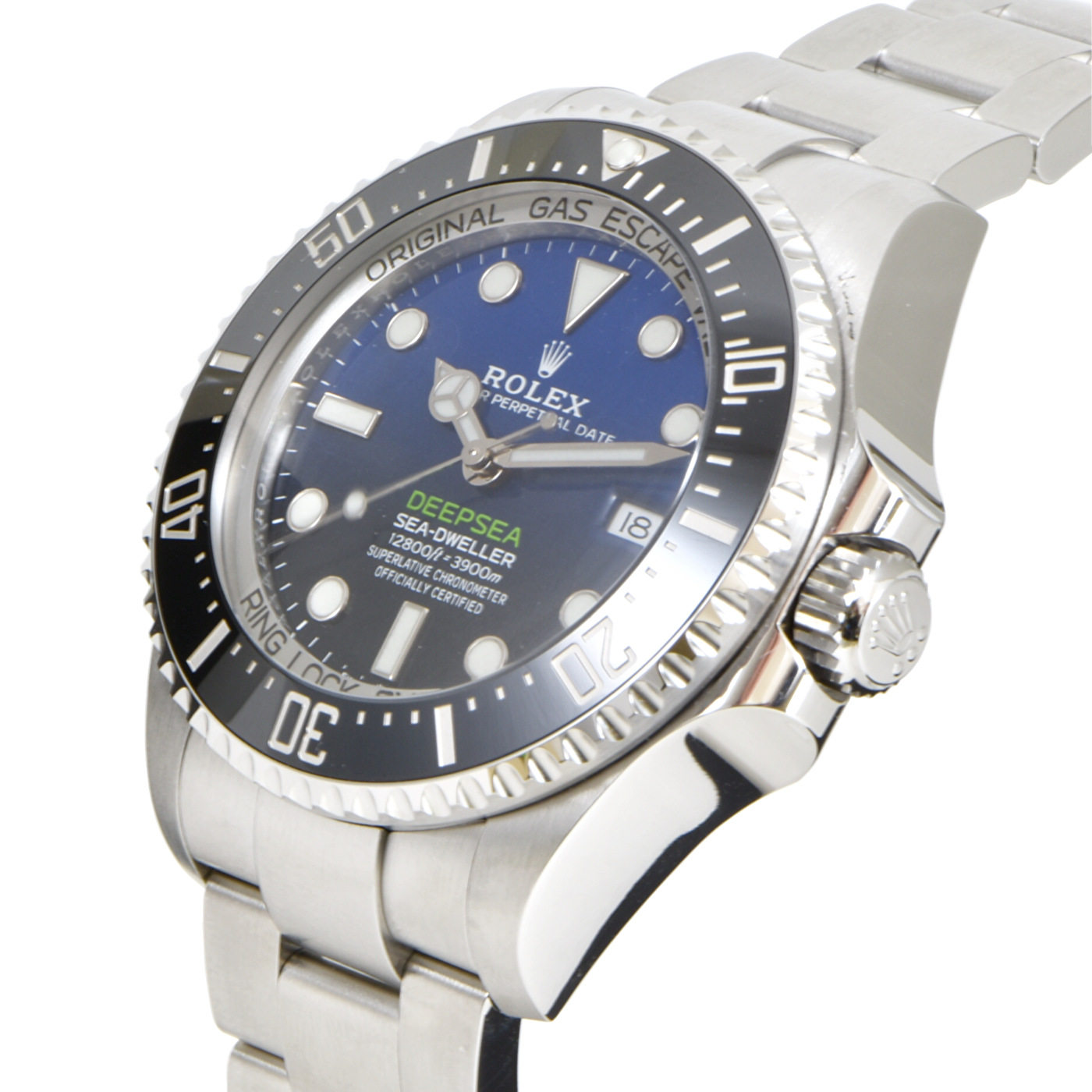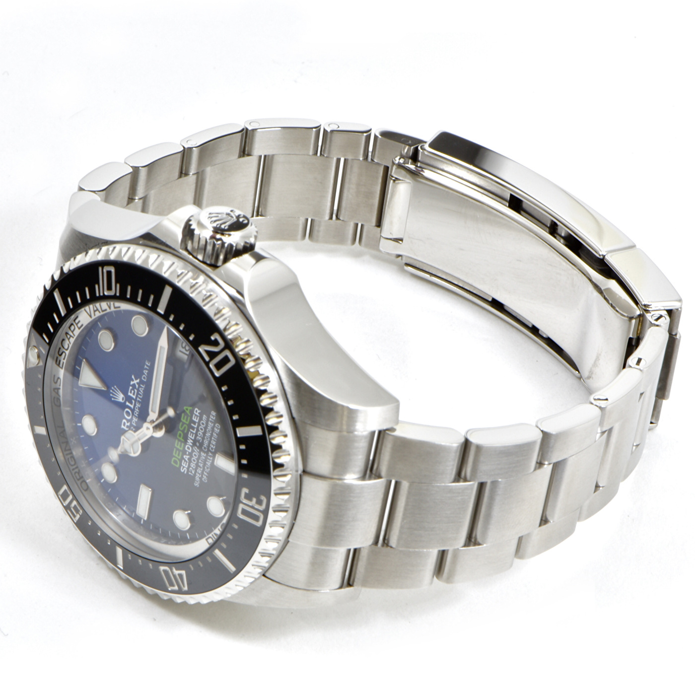 仕様 3,900m防水、チタン合金製裏蓋、ヘリウム排出バルブ、デイト表示、逆回転防止ベゼル、プラチナコーティング目盛りセラクロム製ベゼル、オイスターブレスレット、70時間パワーリザーブ