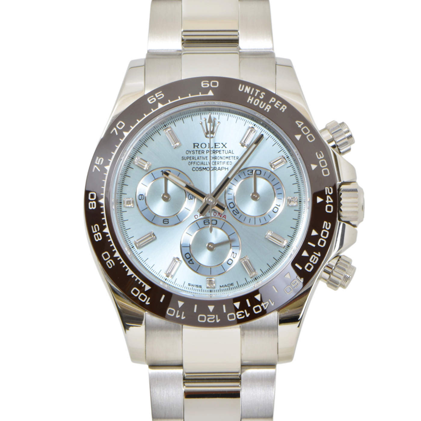 中古 ロレックス コスモグラフ デイトナ プラチナ/セラミック アイスブルー 11ポイントバゲットポイントダイヤ