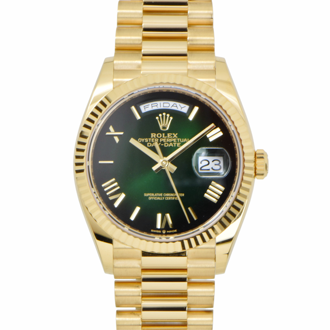 新品 ロレックス デイデイト36 イエローゴールド グリーンオンブレ ダイアル