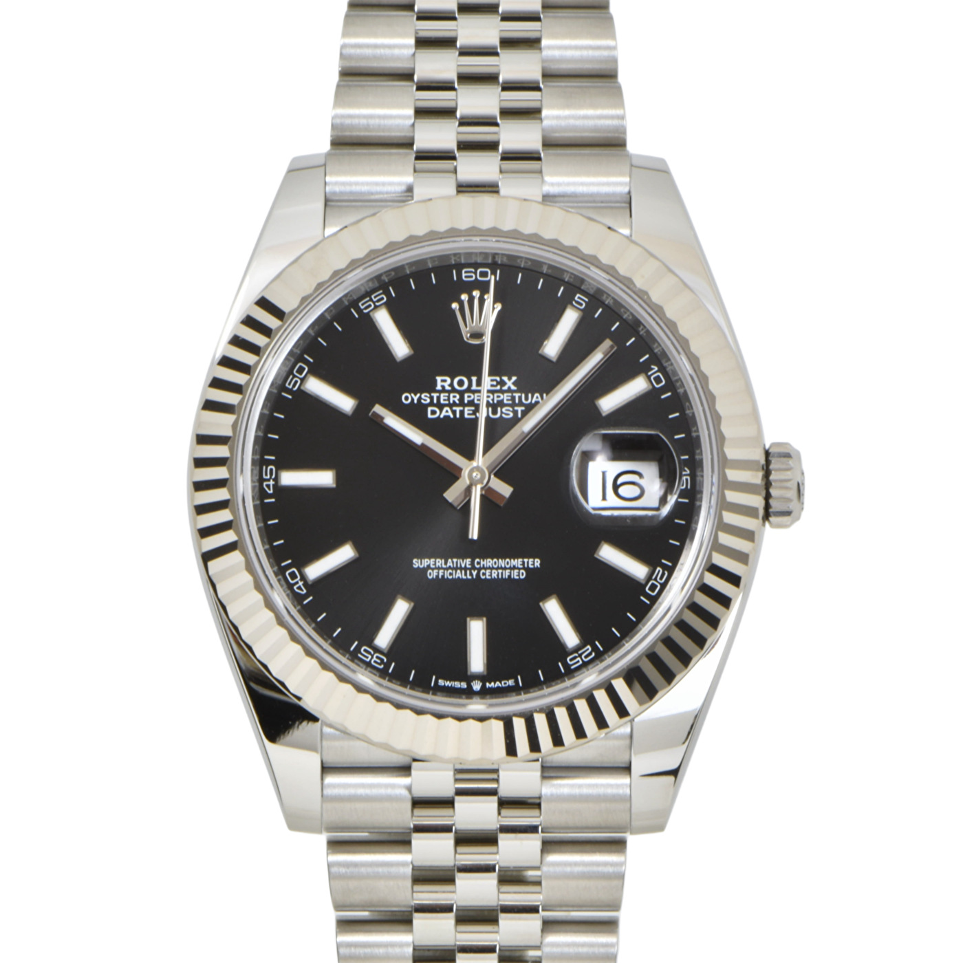 新品 ロレックス デイトジャスト41 スチール/ホワイトゴールド ブライトブラックダイアル