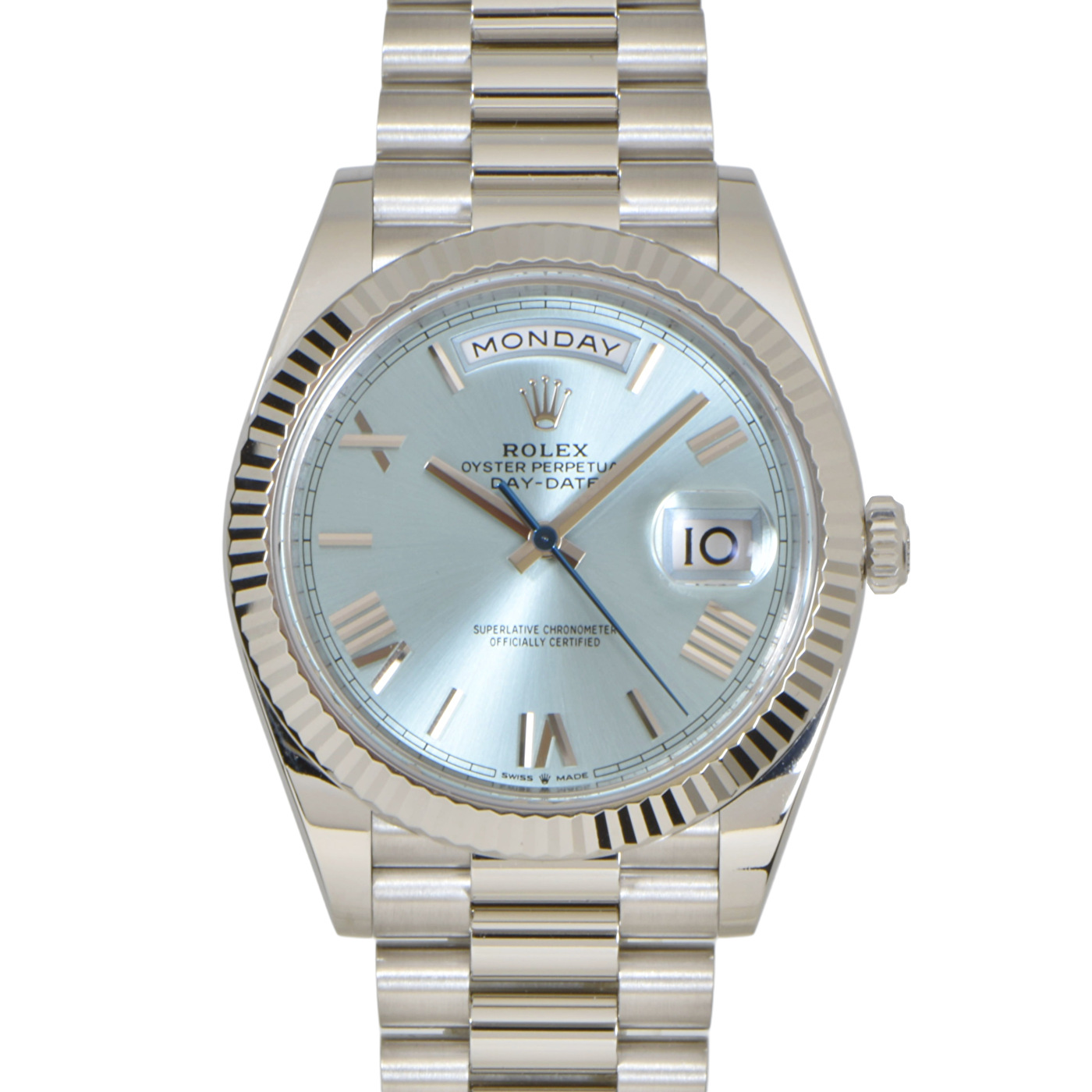 中古 ロレックス デイデイト40 プラチナ アイスブルー ローマダイアル
