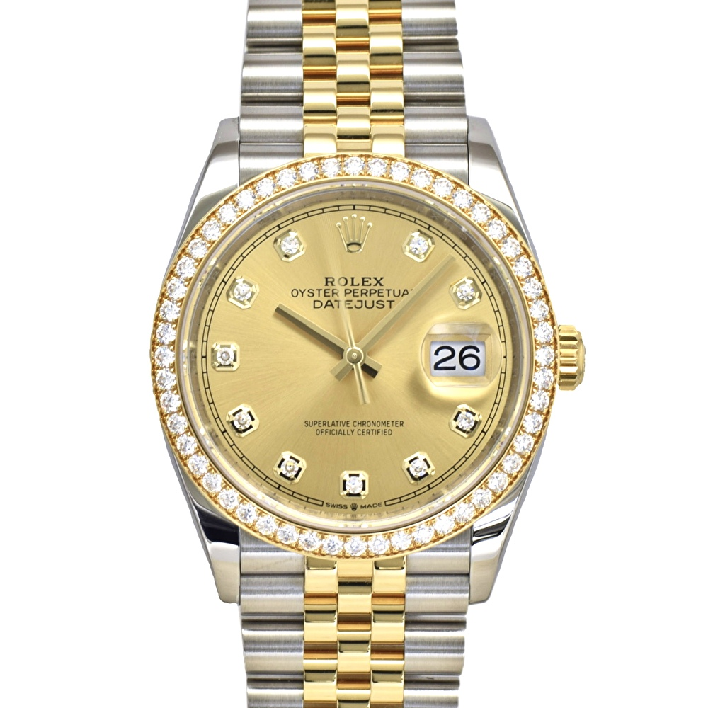 中古 ロレックス デイトジャスト36 スチール/イエローゴールド シャンパン10ポイントダイアル ダイヤ巻き